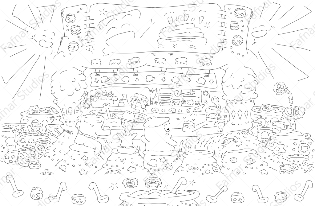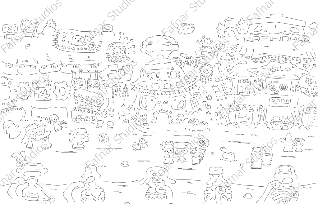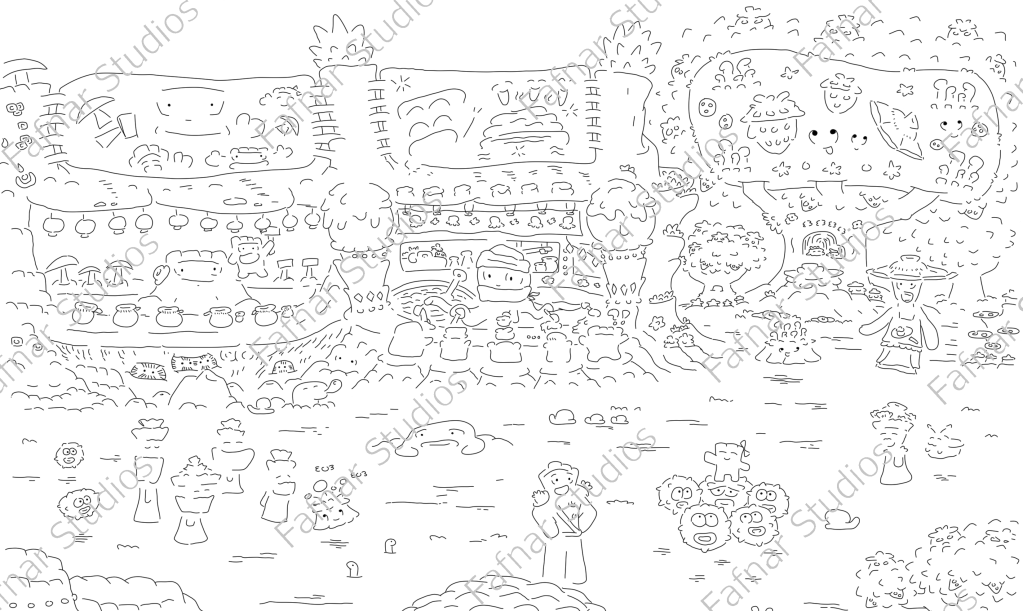 At Fafnar Studios, we drew heavily on inspiration from Studio Ghibli, conducting multiple drawing studies of concept art/movie art. We also conducted in-depth research on the types of drawing techniques used and thought processes of Studio Ghibli artists to develop our own sense of style